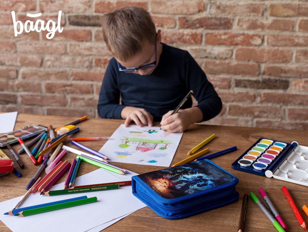 • Klasický školní jednopatrový penál s dvěma chlopněmi.