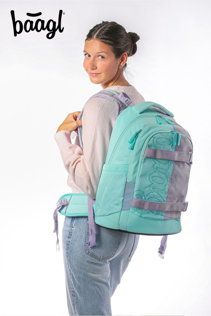 • Postranní kapsy, ideální například na tritanové láhve BAAGL, jsou vyrobeny z pevného materiálu sladěného s designem batohu.
