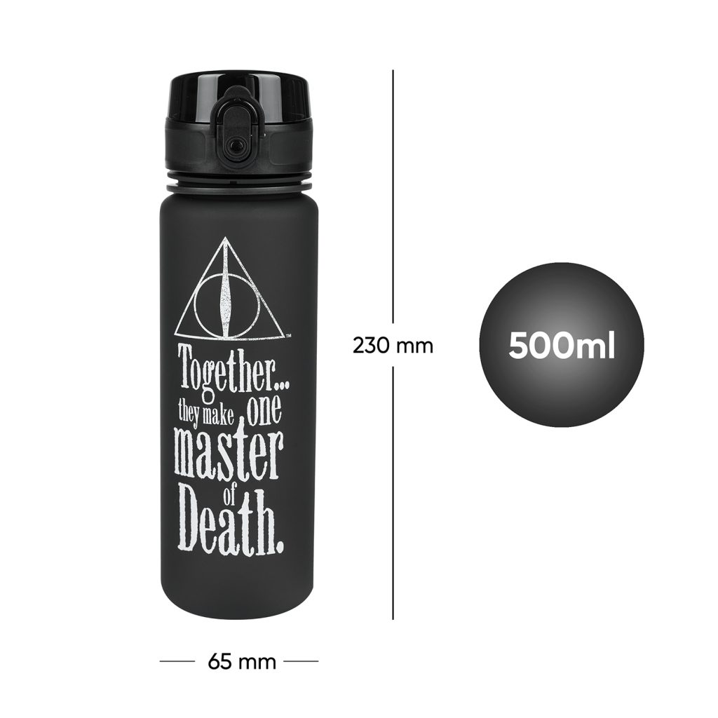 Půllitrová tritanová láhev na pití v motivu relikvií smrti Harryho Pottera.