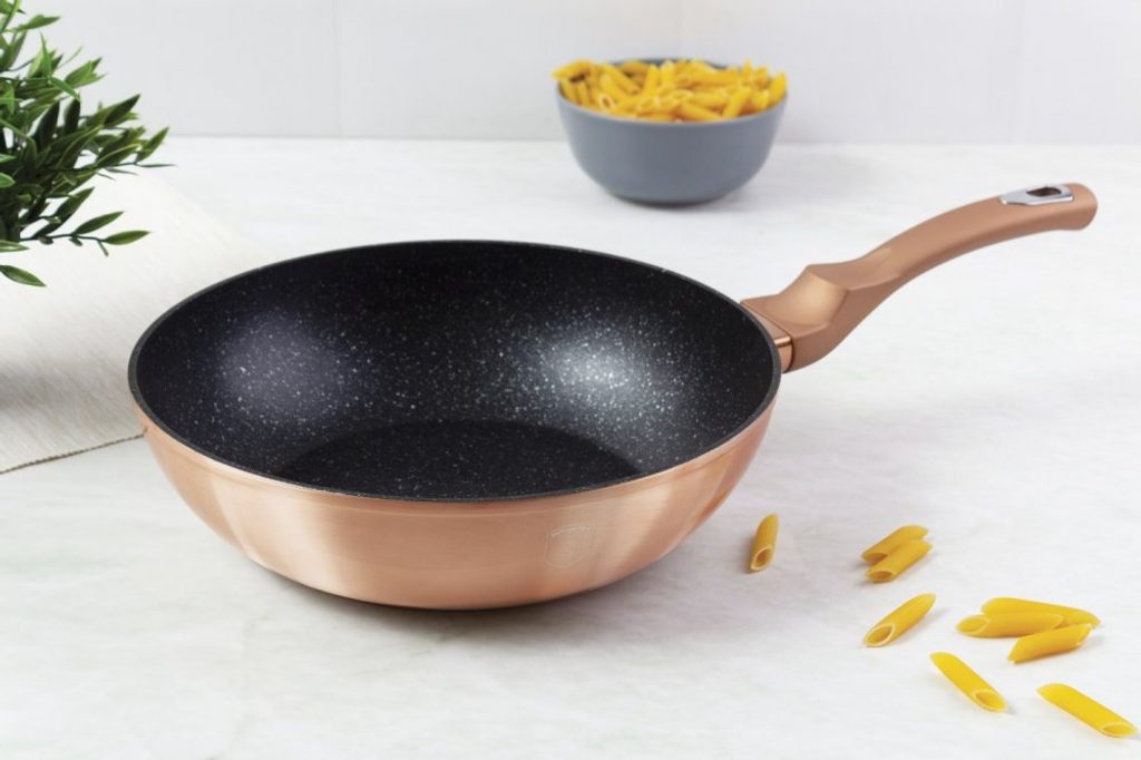 BERLINGERHAUS Pánev Wok s mramorovým povrchem 28 cm Rosegold Metallic Line BH-1512