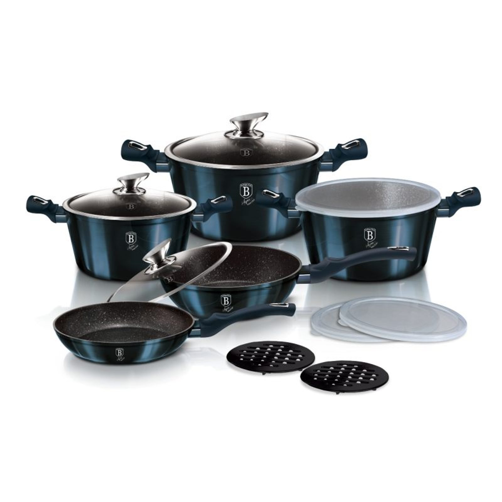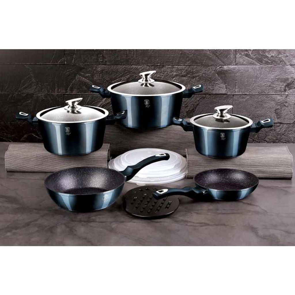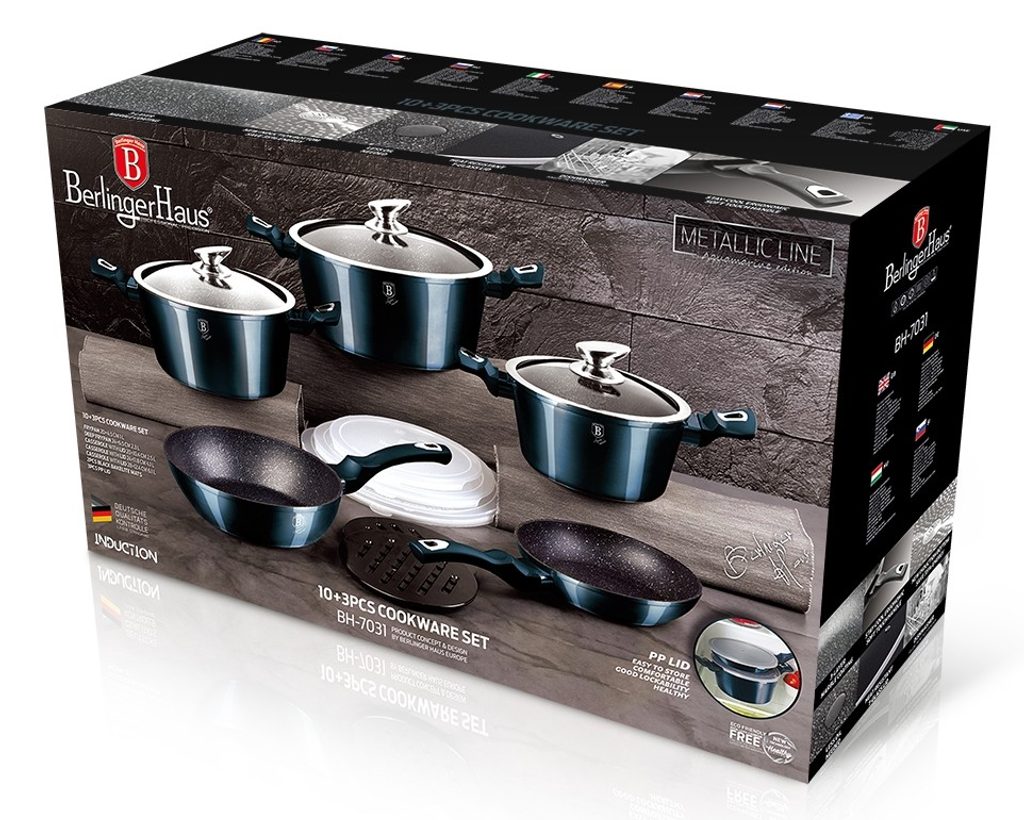 Hledáte vhodnou sadu nádobí do vaší kuchyně? Sadou získáte všechny potřebné nádoby na vaření, ať už budete vařit pro sebe nebo pro více osob. Velkou výhodou je, že můžete objednat najednou více nádobí od ověřeného výrobce BERLINGERHAUS. Sadu nádobí sjednocuje jednotný design, navíc modrá barva celé sady je univerzální a vyjímat se bude v každé kuchyni.