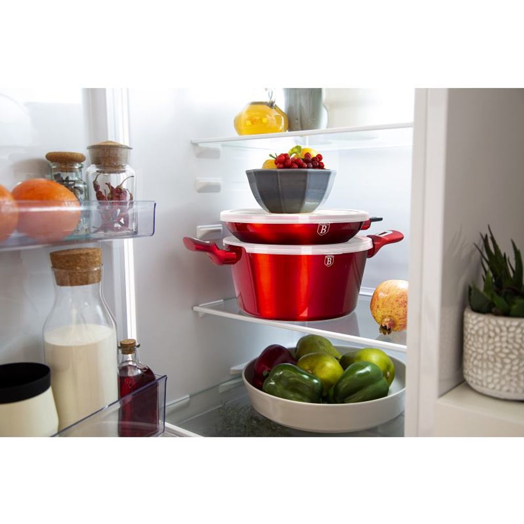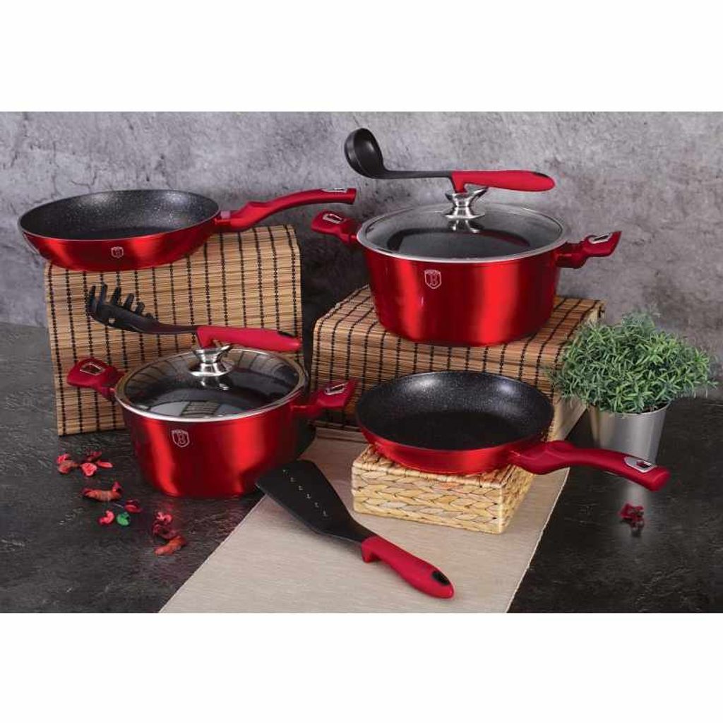 Hledáte vhodnou sadu nádobí do vaší kuchyně? Sadou získáte všechny potřebné nádoby na vaření, ať už budete vařit pro sebe nebo pro více osob. Velkou výhodou je, že můžete objednat najednou více nádobí od ověřeného výrobce BERLINGERHAUS. Sadu nádobí sjednocuje jednotný design, navíc červená barva celé sady je univerzální a vyjímat se bude v každé kuchyni.