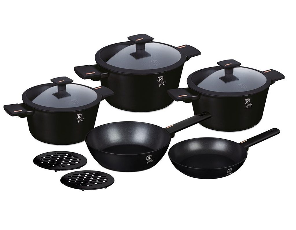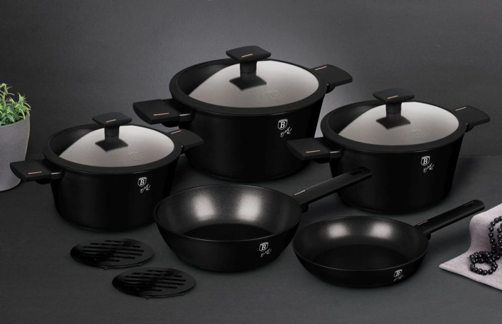 Hledáte vhodnou sadu nádobí do vaší kuchyně? Sadou získáte všechny potřebné nádoby na vaření, ať už budete vařit pro sebe nebo pro více osob. Velkou výhodou je, že můžete objednat najednou více nádobí od ověřeného výrobce BERLINGERHAUS. Sadu nádobí sjednocuje jednotný design, navíc černá barva celé sady je univerzální a vyjímat se bude v každé kuchyni.