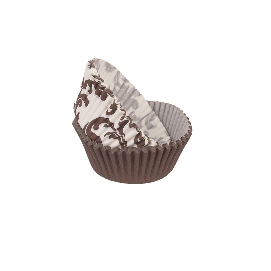 Košík cukrářský na pralinky a jiné sladké dobroty. Materiál: papír. 60 ks. Assort vzorů. Rozměry: horní pr. 3,5 cm, dolní 2,5 cm, v. 1,5 cm.