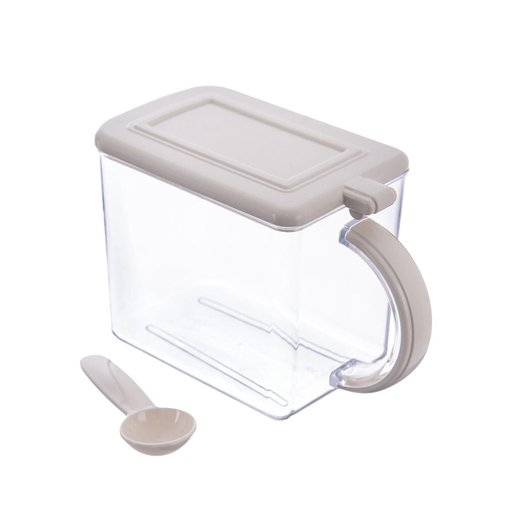 Dóza s uchem a odklápěcím víčkem uloží přehledně koření, sypké potraviny. Součástí výrobku je naběračka. Materiál: plast. Rozměry: objem 1 l, 9x17,5x11,5 l, naběračka pr. 3,5 cm, d. 12 cm.