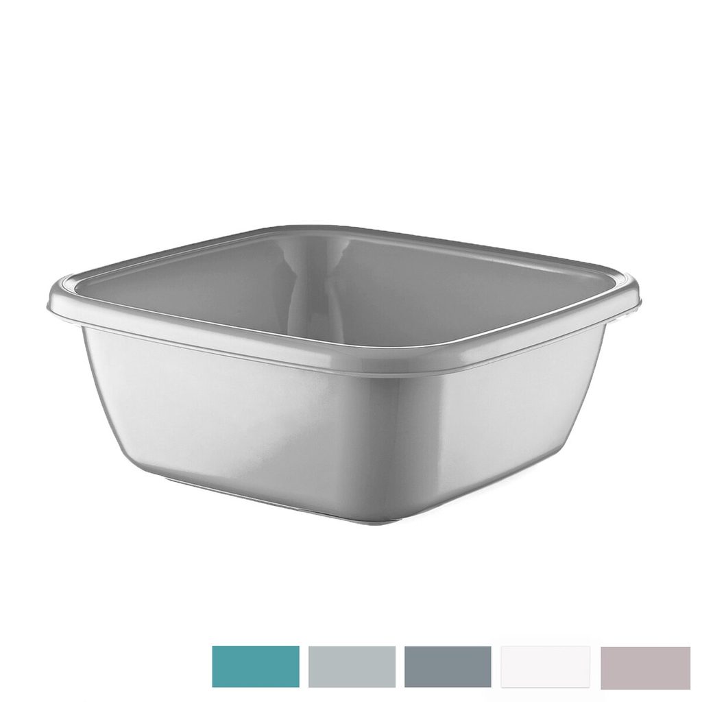 Dřez hranatý barevný. Materiál: plast. Assort barev. Rozměry: objem 14 l, 38,5x38,5x15 cm.