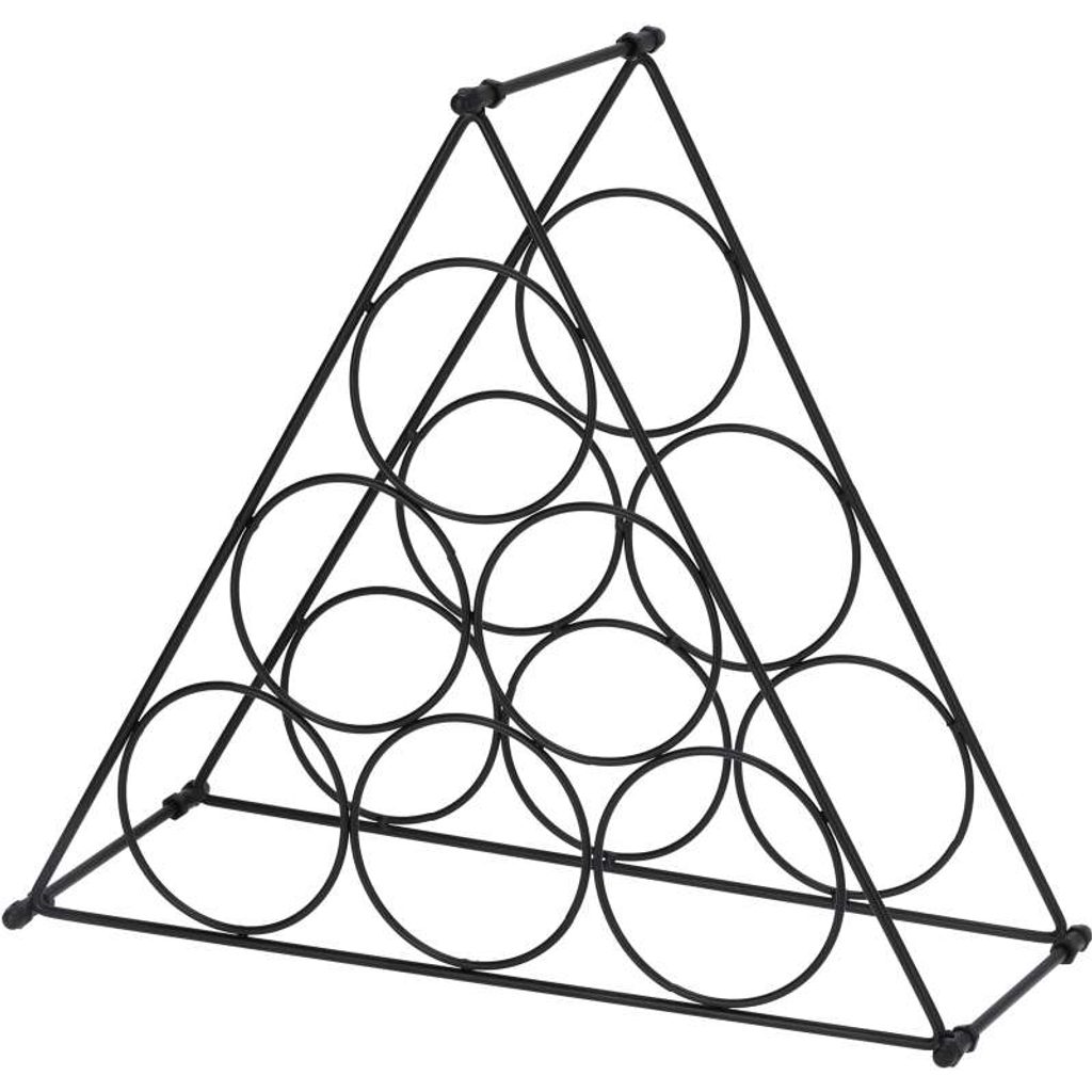 Stylový kovový regál na víno s trojúhelníkovým tvarem a kapacitou pro 6 lahví. Ideální pro uskladnění vína a jeho elegantní vystavení.