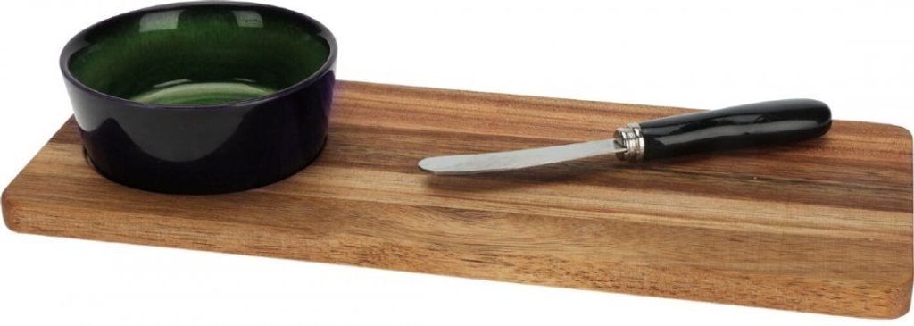 EXCELLENT HOUSEWARE Servírovací podnos + miska a nůž sada 3 ks tmavě zelená KO-278000720zele - servírovací set podnosu, misky a nože pro nejrůznější příležitosti- ideálně použijete při servírování předkrmů- materiál: kamenina s lesklou glazurou, akátové dřevo- stylový podnos z akátového dřeva- roztírací nůž s čepelí z nerezové oceli- akátové dřevo je robustní a má krásnou texturu- perfektní pro servírování předkrmů, pochutin, dipů- žáruvzdorné do 200 °C, misku lze využít také k zapékání- miska je vhodná do myčky nádobí- sada obsahuje servírovací tác, misku a nůž- rozměry podnosu: 30 x 12 x 1,2 cm- rozměry misky: 9 x 3,5 cm- nůž 14,9 cm- barva misky: tmavě zelená- značka: Excellent Houseware