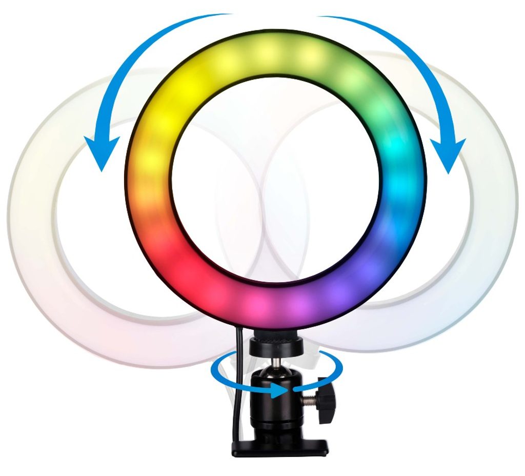 GRUNDIG Kruhové světlo RING LIGHT 48 LED RGB ED-249617 S touto kruhovou lampou od Grundig si můžete vybrat ze všech barev duhy pro vaše video, fotografii nebo Tiktok! Kruhové světlo je dodáváno s klipem, který můžete snadno připevnit na stůl, stůl nebo jiný rovný povrch. Díky tomu je selfie světlo ideální pro použití na mnoha různých místech. Díky ohebnému krku můžete s kruhovou lampou jít jakýmkoli směrem (doslova)! Kruhová lampa je vybavena 48 LED diodami a celou řadou barev. Můžete si také vybrat mezi studeným, teplým nebo neutrálním světlem. Upravte si prstencové světlo podle svých představ díky přiloženému dálkovému ovladači, který je připevněn ke světlu.Technické údaje Kruhové světlo GrundigPrůměr: ?16 CM48 LED diodPružný krkPřizpůsobitelné barvy, jas a teploS klipem pro různé možnosti montáže