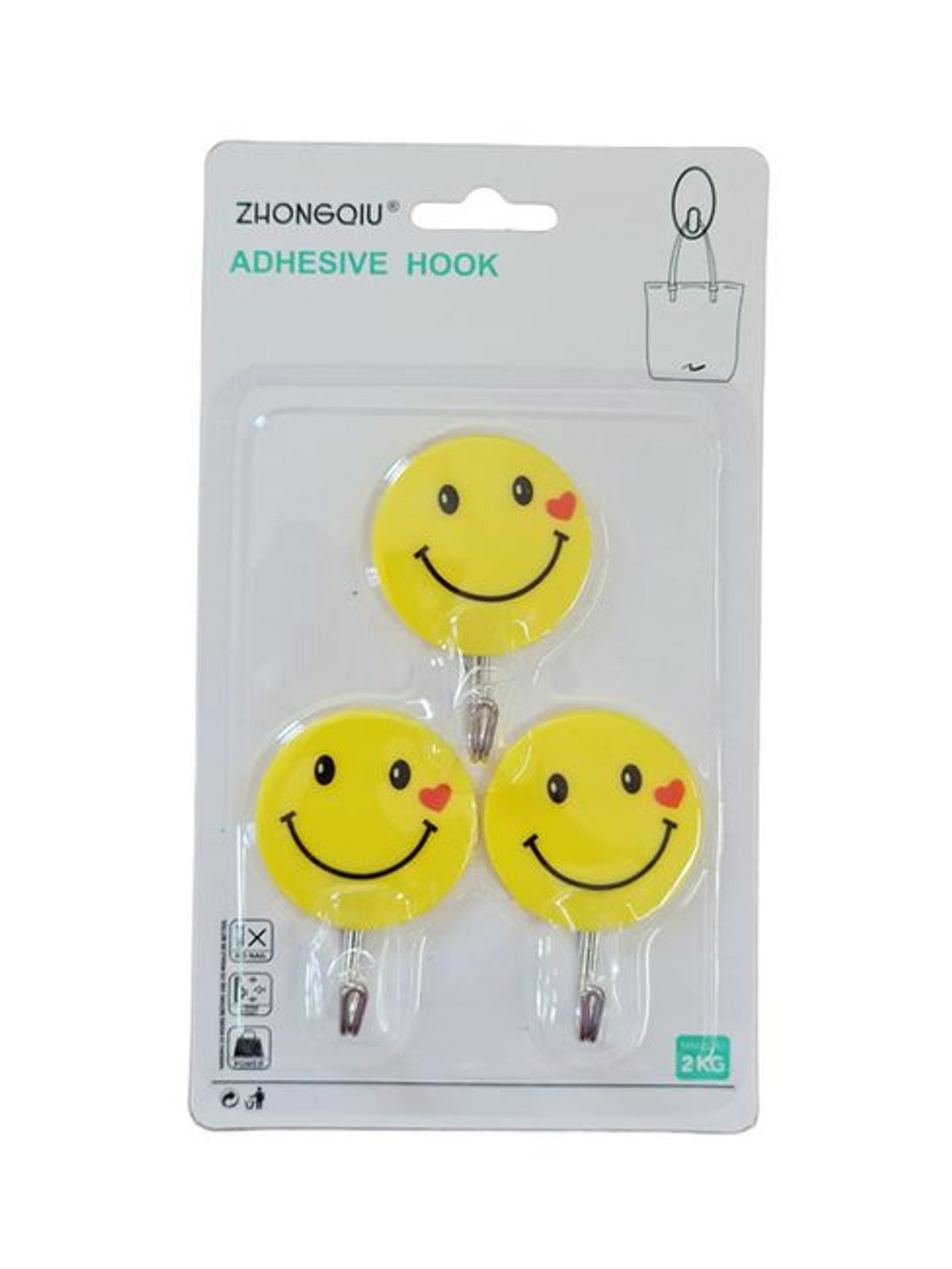 háček- 3ks-SMAJLÍK (116), samolep., kov/plast