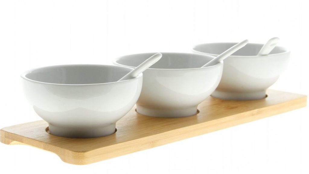 HIT Misky na pochutiny sada 7 ks s bambusovým tácem HT-23472646 Toto útulné prkénko s miskami je ideální pro podávání omáček!- Dřevo/porcelán- Hnědá Bílá- 7 dílná