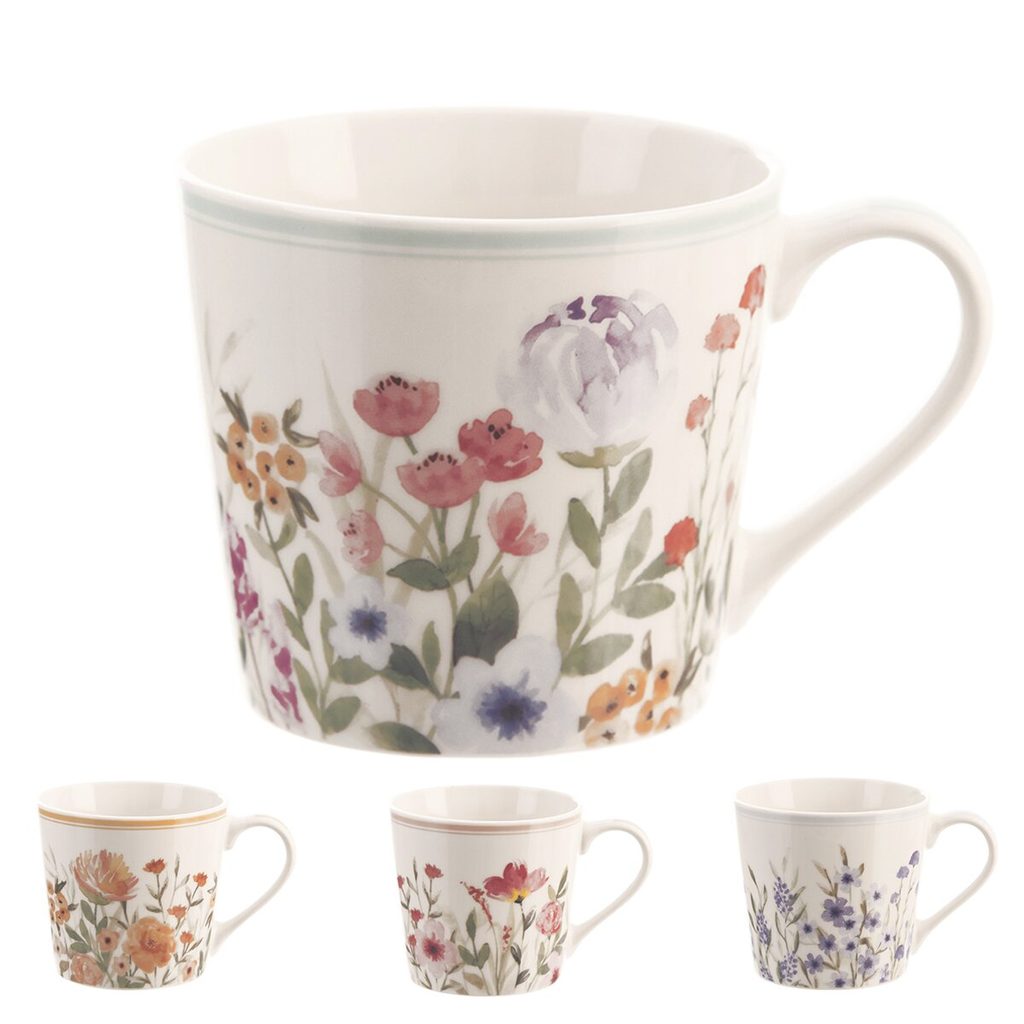 Hrnek s uchem. Materiál: porcelán. Mix dekorů. Rozměry: objem 0,44 l, průměr 9,5 cm, výška 9 cm. Vhodný do myčky nádobí a MVT.