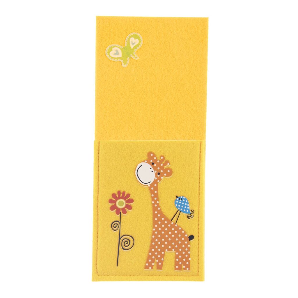 Kapsa na příbory s dětským dekorem ŽIRAFA ozdobí prostřený stůl. Materiál: polyester (filc), plastový potisk. Rozměry: 21x9 cm.