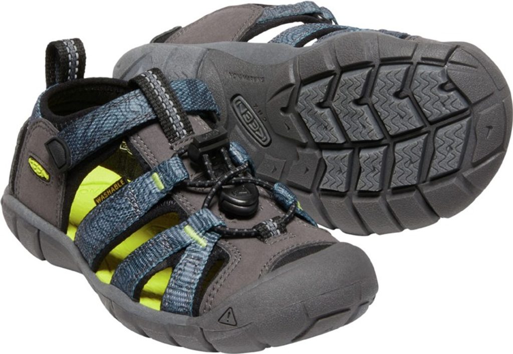 Skvělé a velmi populární dětské sandály Keen Seacamp II CNX pro všestranné využití jsou vyrobeny technologií KEEN.CNX. To znamená, že se jedná o nízkoprofilovou univerzální letní botu inspirovanou minimalistickým stylem obouvání. Nízký profil boty umožňuje přirozený pohyb nohy v maximálním rozsahu, zároveň však poskytuje chodidlu dostatečnou míru bezpečí, včetně patentované ochrany prstů. Model vyniká především nízkou hmotností. Svršek je z pevné polyesterové popruhoviny doplněné o rychleschnoucí podšívku. Anatomicky tvarovaná stélka z materiálu EVA zajišťuje podporu klenby chodidla a pohodlí při celodenním nošení. Kvalitní gumová podešev s vícesměrným vzorkem dobře přilne i k mokrému povrchu. Rychlozavazovací systém umožňuje snadné nazutí a rychlé upevnění na noze, které navíc ještě doplňuje pásek přes nárt se zapínáním na suchý zip. Boty jsou ošetřeny přírodní antibakteriální technologií ECO ODOR CONTROL proti zápachu a dají se prát v automatické pračce.