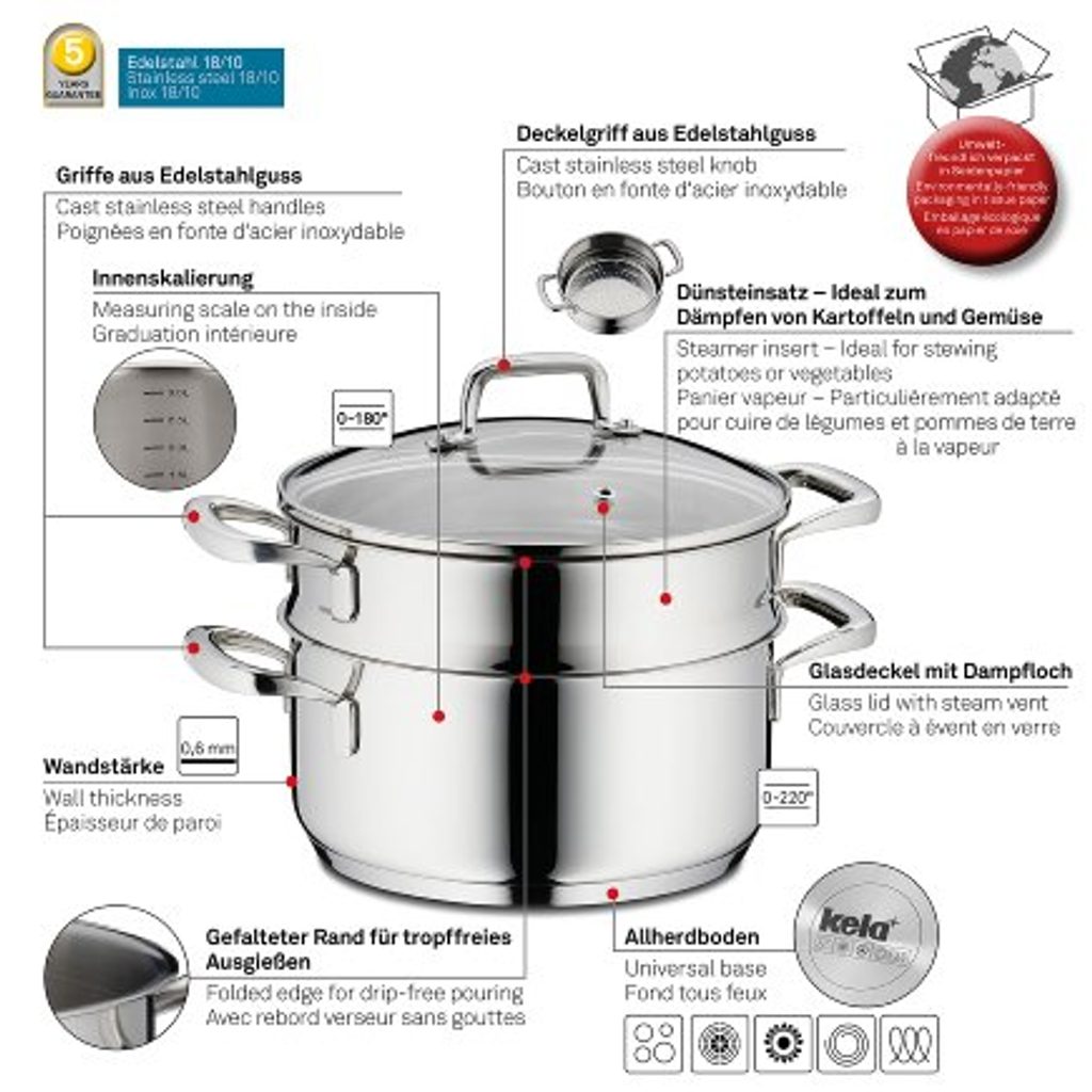 KELA Hrnec napařovací s poklicí nerez 18/10 FLAVORIA 20 cm sada 3 ks KL-10190 - ušlechtilá nerezová ocel v nejvyšší kvalitě 18/10