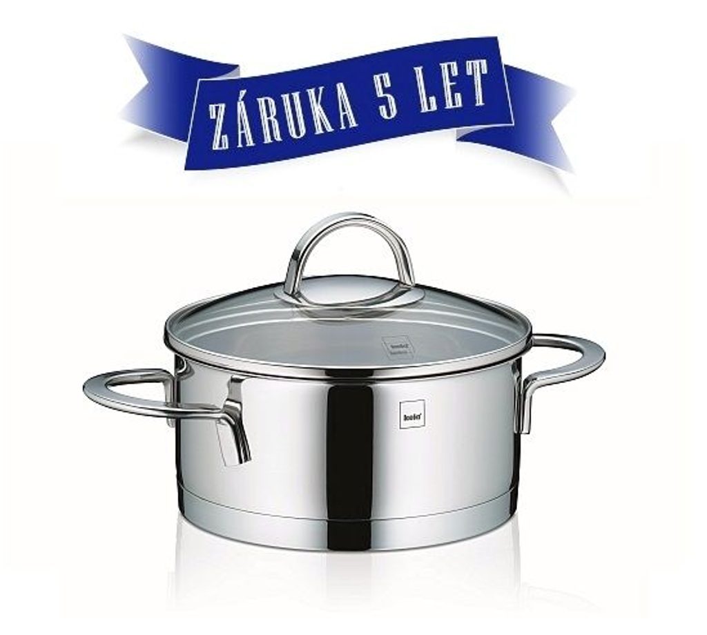 - materiál: nerezová ocel 18/10 - objem: 1,3 l- výška: 8 cm- průměr: 16 cm- síla stěny 0,8 mm- skleněná poklice- nerezové rukojetiLuxusní hrnce a pánve německé značky KELA, řady Cailin se zárukou 5 let jsou vyrobeny z leštěné nerezové oceli 18/10, mají vícevrstvé termoakumulační dno, sílu stěny 0,8 mm, skleněné poklice a nerezové rukojeti. Jsou vhodné pro všechny typy sporáků včetně indukčních.