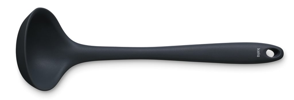 KELA Naběračka na polévku Tom silikon černá KL-12625 Naběračka Tom by kela - 28,5 cm dlouhá a proto ideální pro pohodlné a bezpečné nabírání polévek, dušeného masa nebo omáček. Kvalitní kuchyňský pomocník je vybaven šikovnou, oválnou rukojetí a praktickým poutkem na zavěšení, takže jej lze po použití buď zavěsit, nebo uklidit do šuplíku. Vyrobeno z černého silikonu!Černý silikon, 28,5x8,5cm