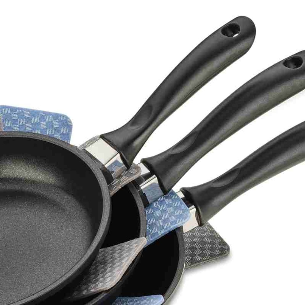 KELA Ochranné podložky na pánve Amparo plsť zelená 3 ks KL-12328 Bezpečně stohujte své pánve pomocí třídílné sady chráničů pánví Amparo. Stabilní plsť chrání vaše pánve před nepříjemným poškrábáním při stohování. Sada obsahuje tři chrániče pánve ve dvou různých barvách (1x tmavě šedá, 1x mátově zelená a 1x světle šedá). Všechny tři mají tloušťku 3 mm.filc 1x tmavě šedá 39cm 1x mátová zelená 35cm 1x světle šedá 31cm