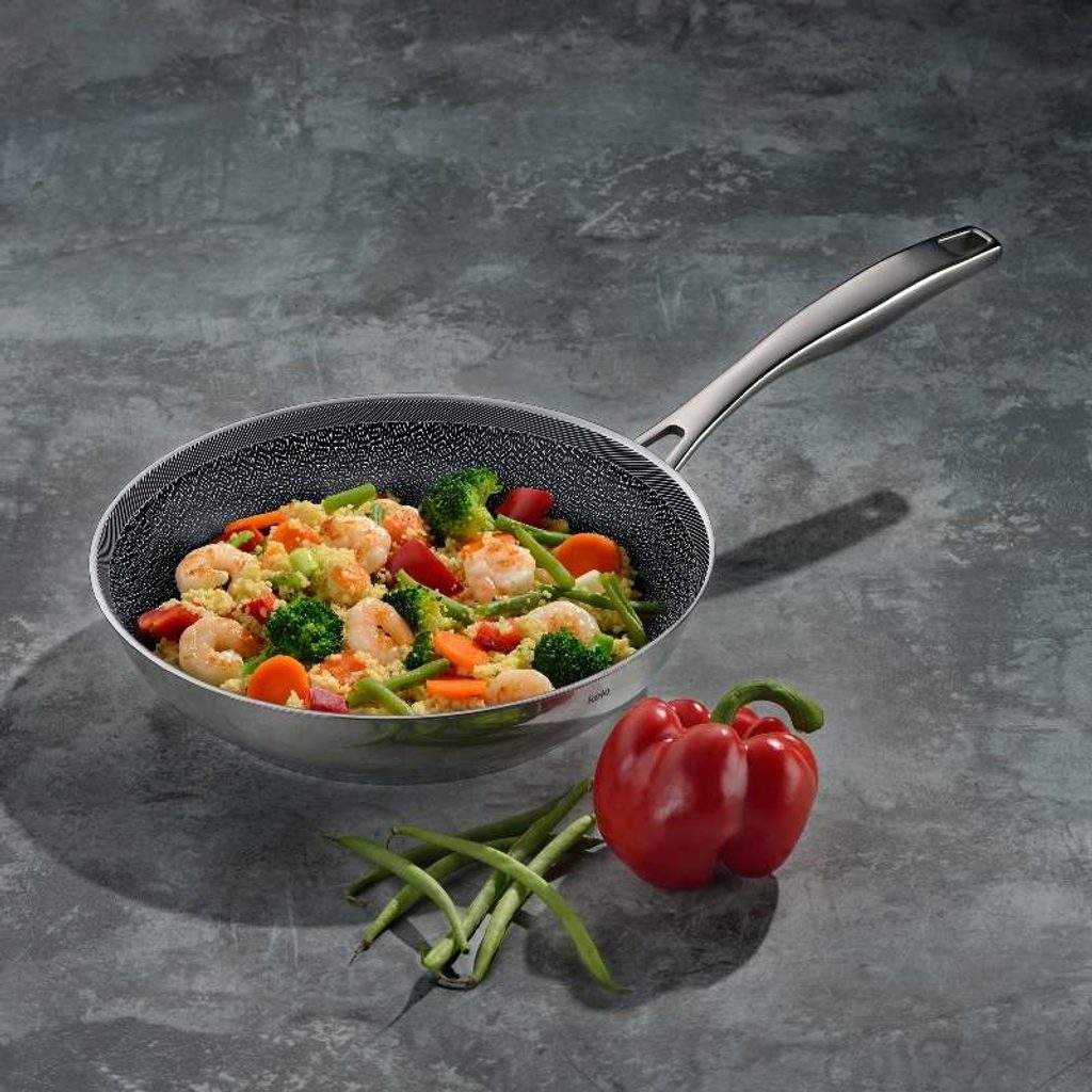 Objevte novou hvězdu vaší kuchyně! Pánev Flavoria z nerezové oceli v sobě spojuje eleganci, odolnost a špičkovou funkčnost. Díky unikátní voštinové struktuře a keramickému nepřilnavému povrchu se stane vaším každodenním pomocníkem, na kterého se můžete spolehnout.