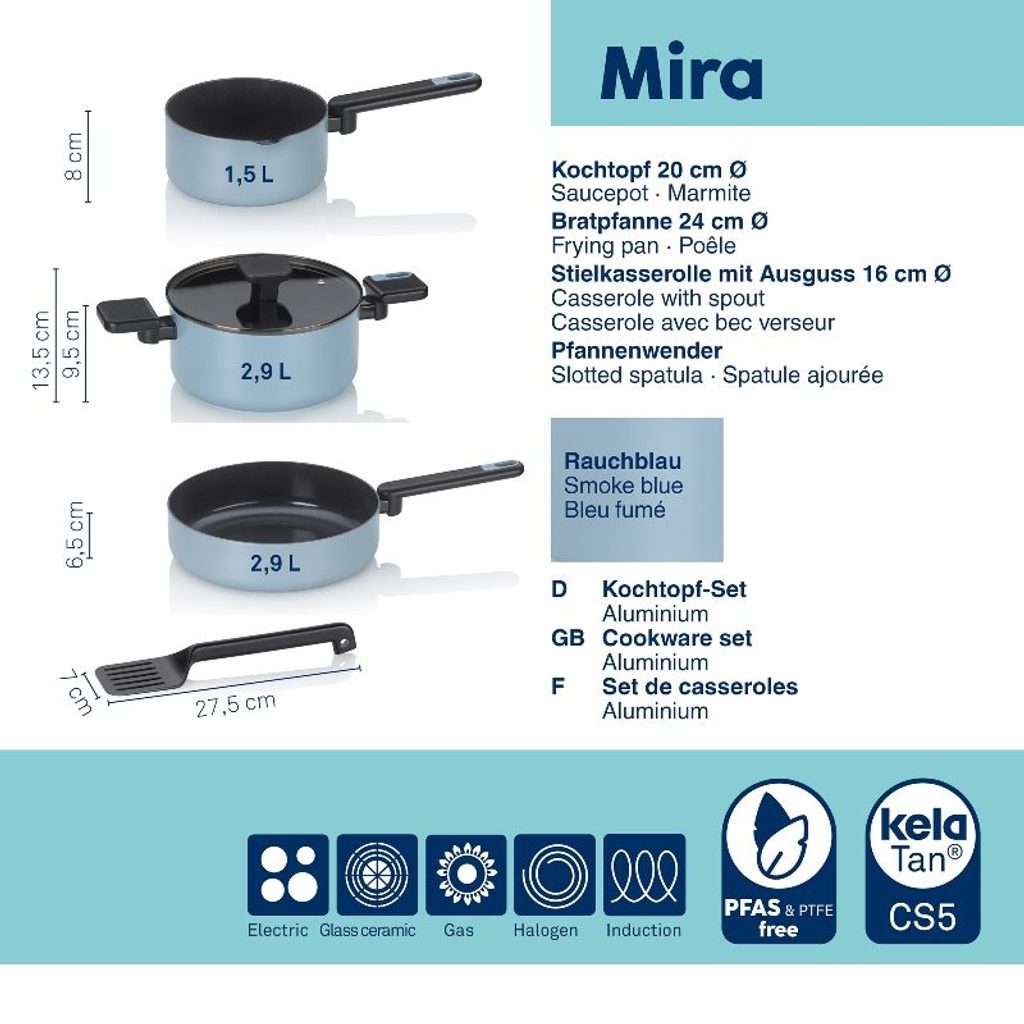 Moderní hliníková sada nádobí v kouřově modr barvě přináší do vaší kuchyně harmonii stylu, funkčnosti a pohodlí. Spojuje elegantní design s praktickými detaily, které ocení každý, kdo rád vaří a zároveň si potrpí na estetiku.