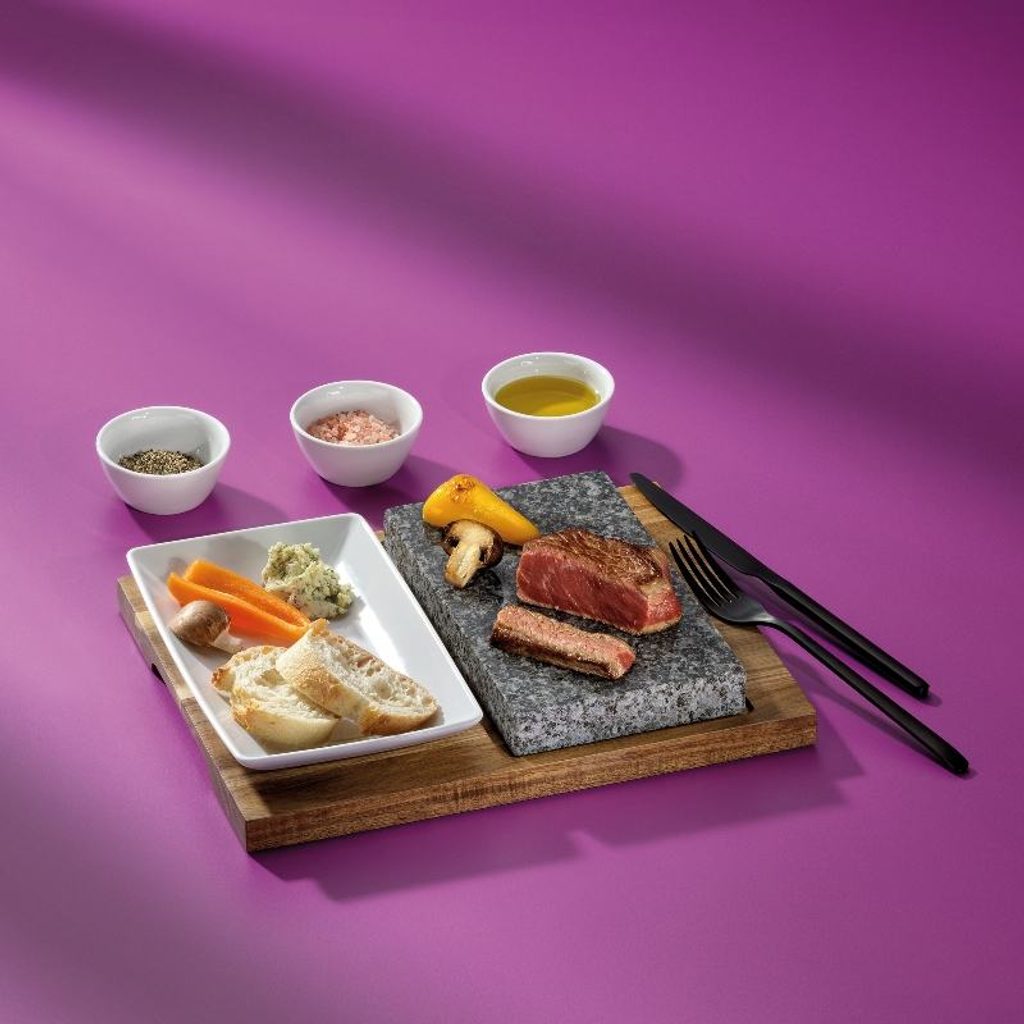 KELA Servírovací misky žhavý kámen XL Country akátové dřevo tmavě šedá 29,0x23,0x4,5cm KL-16629