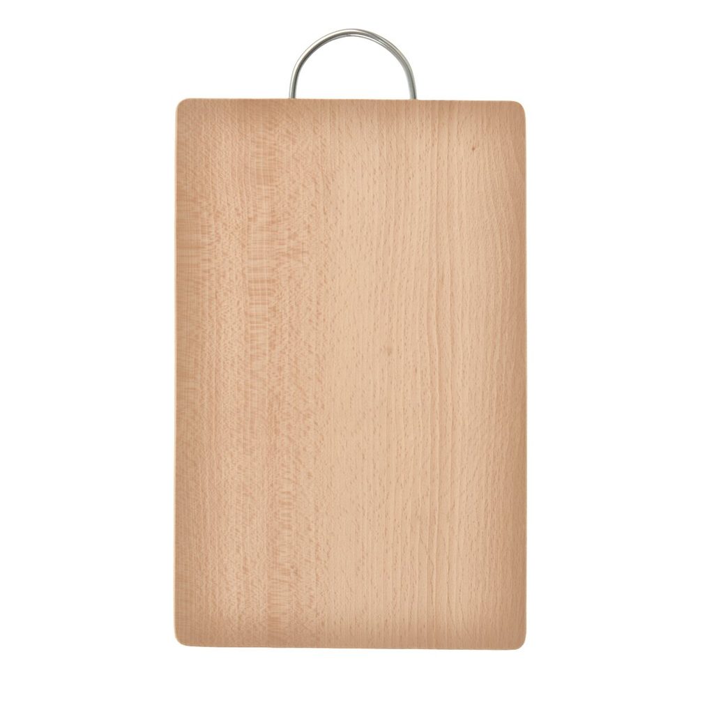 Prkénko s uchem. Materiál: bukové dřevo, kov. Rozměry: 33x21,5x1,5 cm, d. s uchem 37 cm.