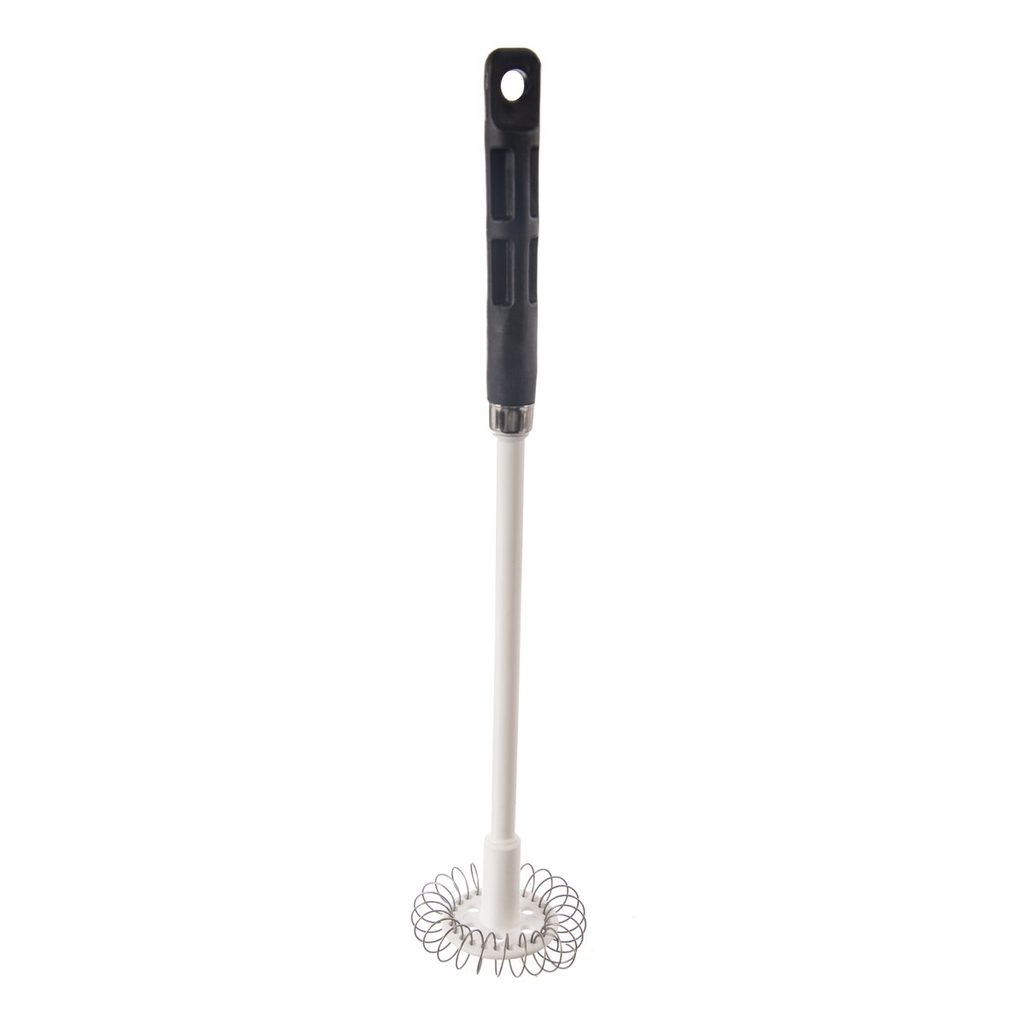 Spirálový šlehač ocení každá hospodyňka. S tímto výrobkem vyšleháte šlehačku, bílek, palačinkové těsto i jíšku. Vyšleháte i horké omáčky, které jsou pak jemnější. Šlehač o průměru 6,5 cm můžete použít ke šlehání v hrnečku. Vyšleháte i malé množství šlehaného roztoku. Nejlépe, když jsou nerezové kroužky zality šlehaným roztokem. Možnost zavěšení. Materiál: plast, nerezová ocel. Rozměry: pr. 6,5 cm, d. 31 cm.