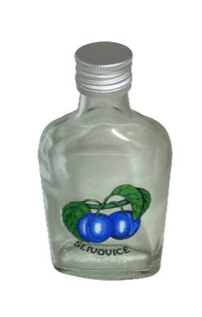 láhev 0,2 l ŠVESTKA (placatka)+kov.uzávěr, sklo