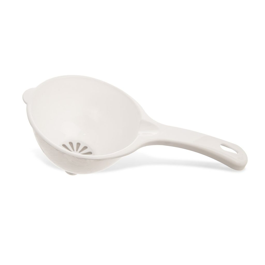 Nálevka s jemným sítkem a rukojetí. Materiál: PP plast. Rozměry: pr. 11,5 cm, pr. Otvoru pro plnění nádob 1,5 cm, d. 22,5 cm.