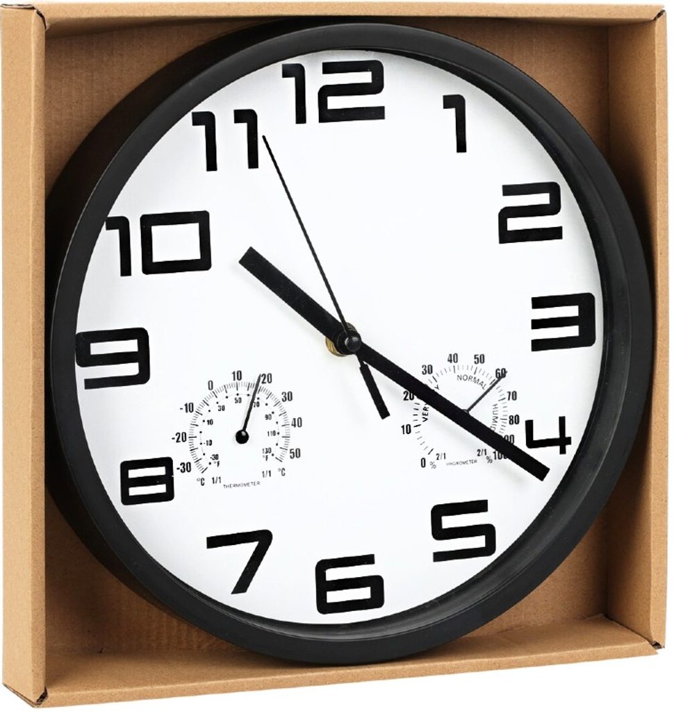 Praktické nástěnné hodiny, které kromě přesného času zobrazují i teplotu a vlhkost vzduchu. Hodí se do domácnosti i kanceláře a nabízejí moderní design v kombinaci černého okraje a kontrastního ciferníku.
