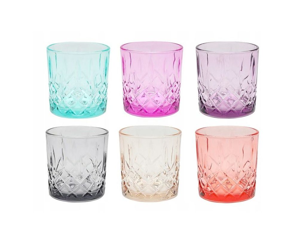 sklen. 340ml, 6ks, d8x8,5cm, MIX barev, whisky