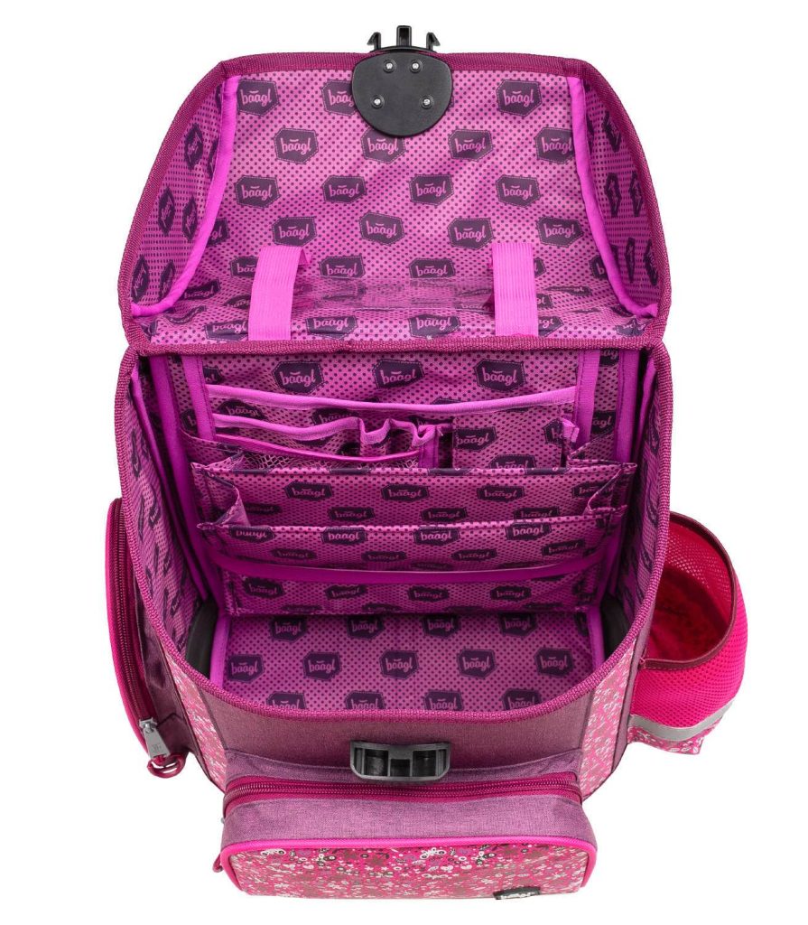 • Uvnitř aktovky je průhledná kapsa s rozvrhem a vnitřní organizér umožňující rovnoměrné rozložení hmotnosti.