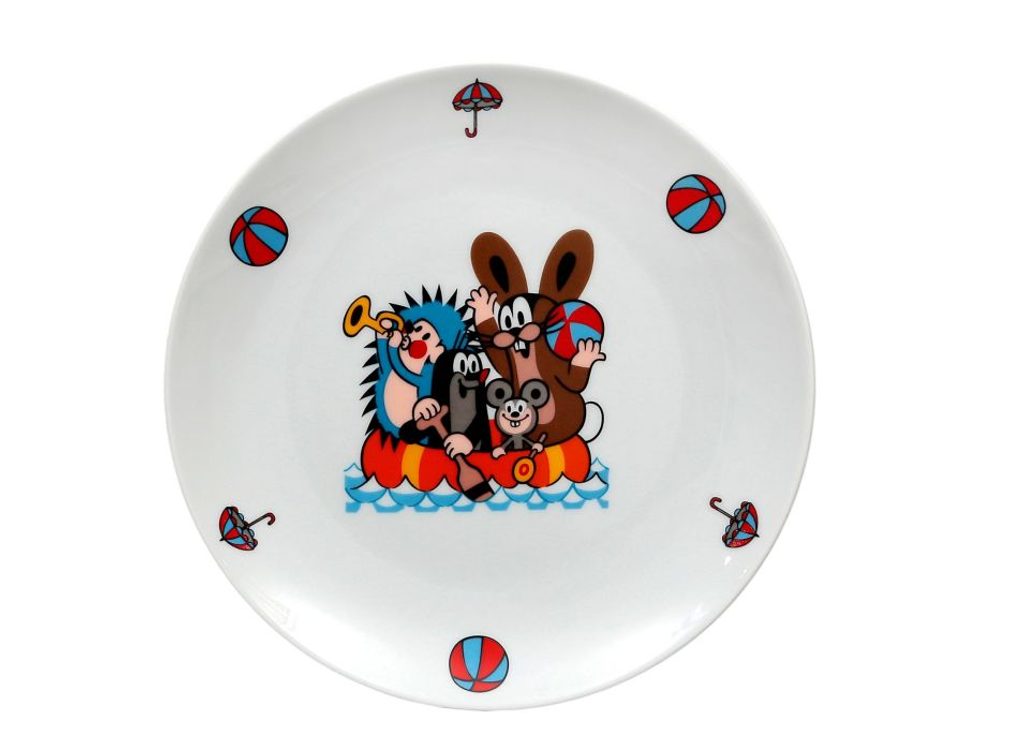 talíř d21cm mělký, KRTEK a člun,dětský,český porc.
