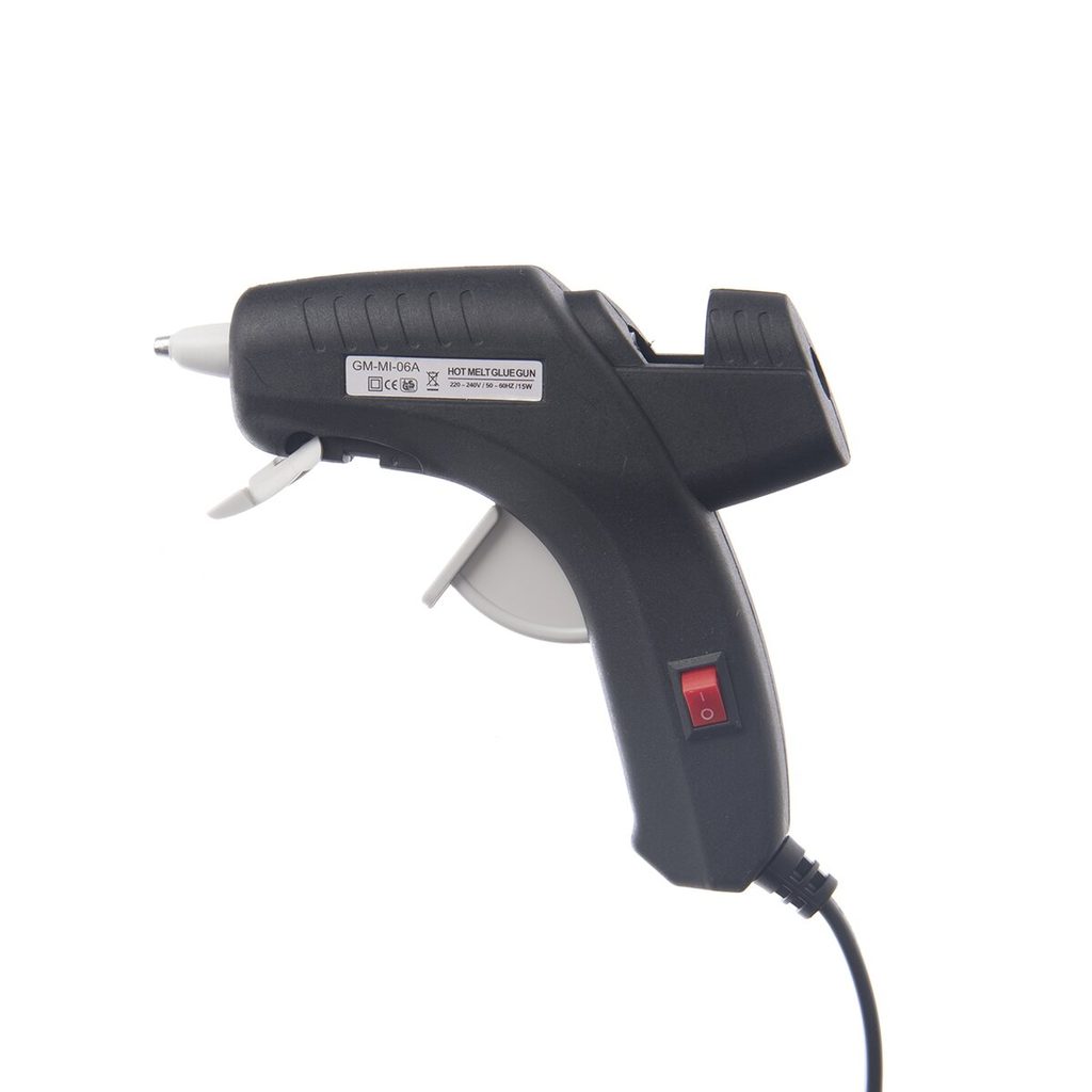 Tavná pistole nabízí univerzální využití. Pomůže vám při nejrůznějších opravách, kdy je potřeba slepit jednotlivé části, využijete ji při přípravě nejrůznějších aranží, věnců, dekorací... Příkon: 15 W, napětí 220-240 V / 50-60 HZ. Vypínač pro ruční zapínání a vypínání (pistoli můžete mít celou dobu v síti a vypínačem ovládat nahřívání). Délka kabelu 95 cm. Doba zahřívání 3-5 minut, max. teplota 200 °C (+/- 10 °C). Lepicí množství cca 6-10 gramů/min. Používají se tavné tyčinky o pr. 7 mm. Z tavné pistole vychází roztavené lepidlo o pr. 2 mm. Sklopný stojánek. Materiál: plast polyamid 6, ABS (tlačítko), kov. Rozměr: d. 13 cm, š. 3 cm. Součástí balení je návod. Tavné tyčinky pro tuto velikost pistole v naší nabídce pod číslem 833182.