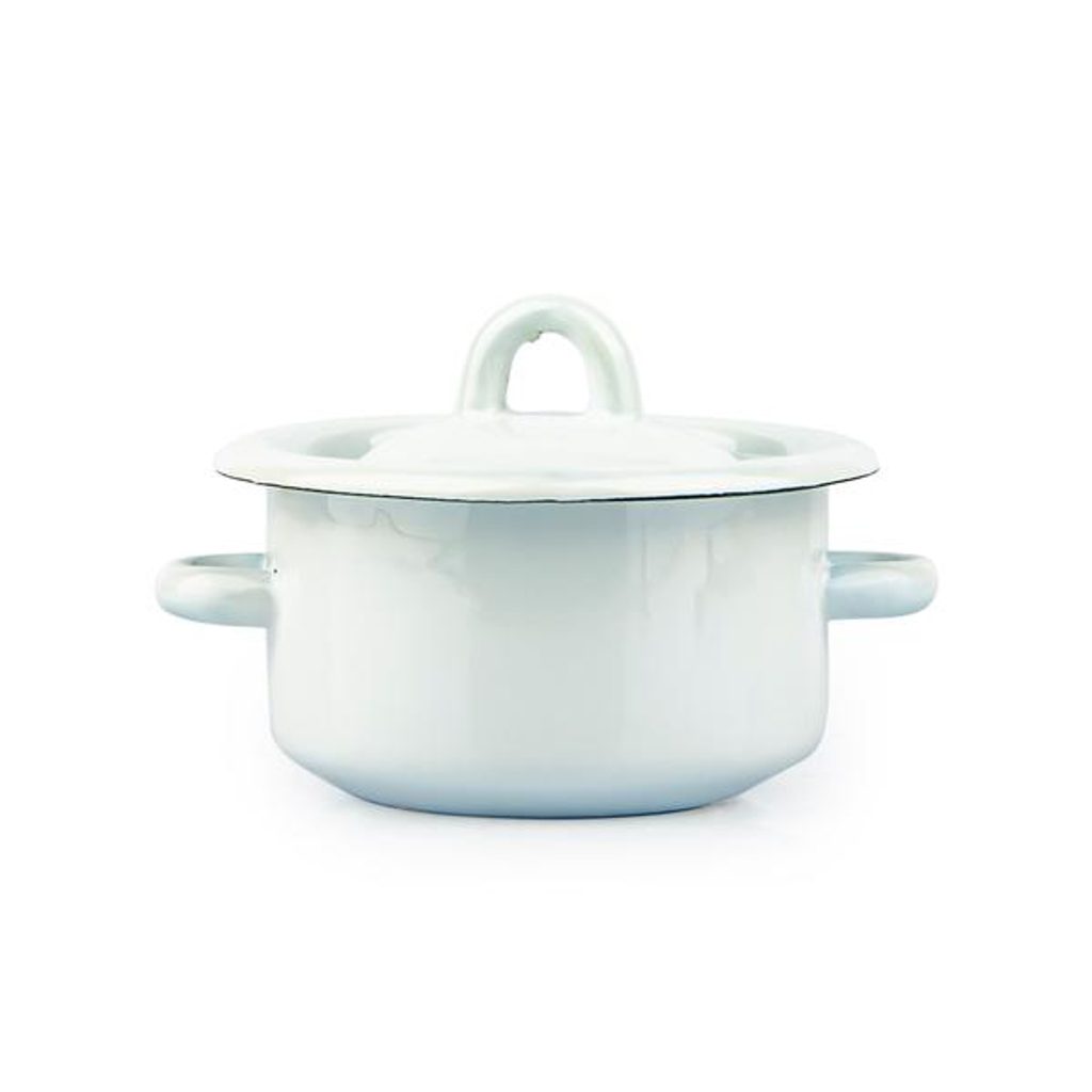 HRNEC S POKLICÍ SMALT 0,4 L, BÍLÁ