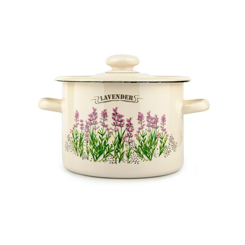 Smalt se používá v kuchyni již řadu let. Smaltový hrnec je výborným pomocníkem k přípravě veškerých pokrmů, ale můžete ho použít jako dekorativní prvek, který vnese do každého domu či chalupy kus veselé nálady. Je vhodný na všechny druhy sporáků, včetně indukce. Hrnec má 2 praktická ucha pro snadnou manipulaci. Tento smaltovaný hrnec nabízíme s levandulovým dekorem s objemem 3 l.