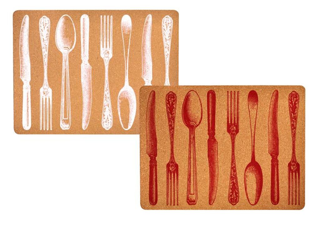 Elegantní prostírání s dekorem příborů je vhodné na každý jídelní stůl. Prostírání Příbory je vyrobeno z korku.Rozměry - 30x40 cm. Barva hnědá s bílým nebo červeným potiskem příborů. PROSTÍRÁNÍ "PŘÍBORY" 40X30CM, ASSORT BÍLÁ/ČERVENÁ