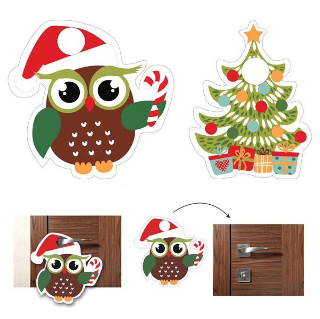 Závěs na kliku 2 ks - sova, stromeček je krásná vánoční dekorace k ozdobení klik v čase vánočním. Výška ozdoby je 23 cm. Materiál - papír.