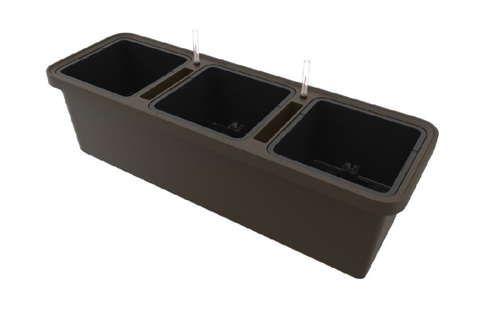 Každý díl má samostatně vyjímatelnou nádobu. Truhlík je opatřen kolečky, nádoby mají úchyty a také otvory pro pevné uchycení opory pro rostliny. Truhlík má velkou zásobárnu vody s hladinoměrem,…