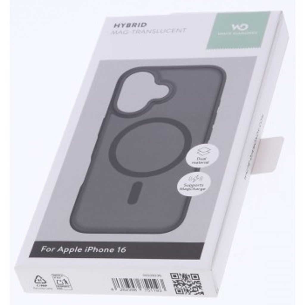 White Diamonds Hybrid Case, kryt pro Apple iPhone 16, magnetický, matný, poloprůhledný černý