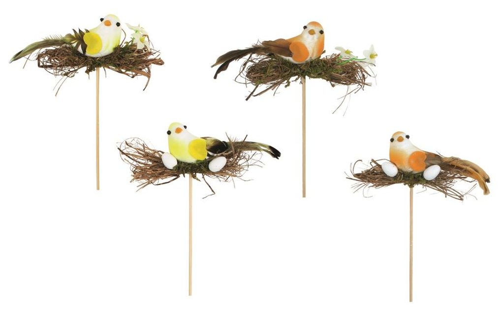 zápich PTÁČEK s hnízdem 13cm, dřevo, dek.