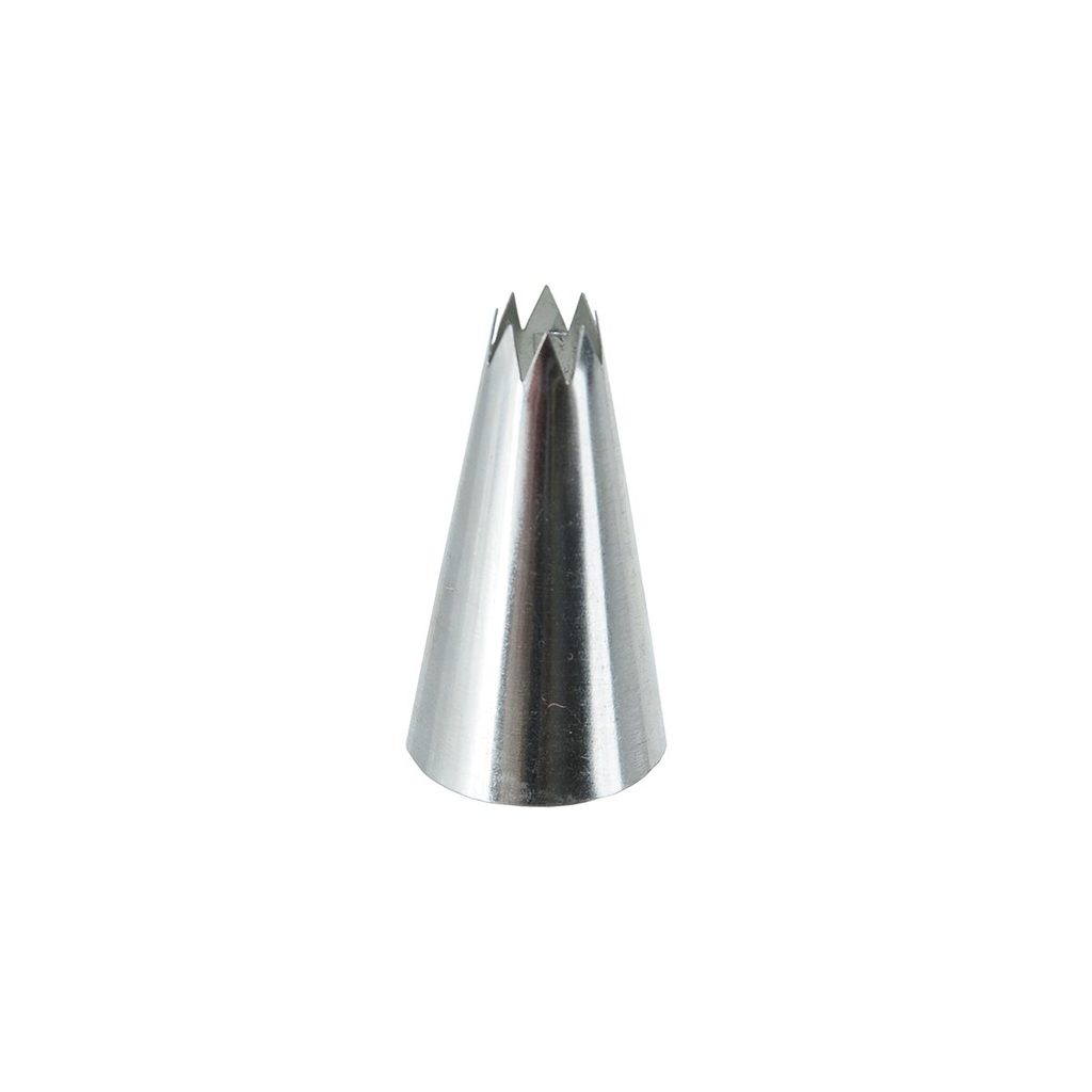 Špička zdobicí hvězda - 8 cípů. Využijete ji na zdobení dortů a zákusků krémem. Materiál: nerez. Rozměry: pr. 1 cm, d. 4,5 cm.